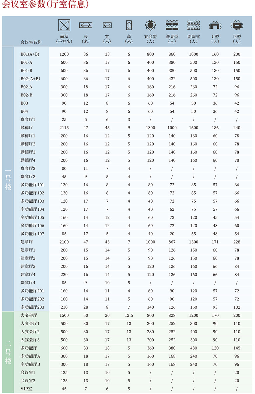 拥有21,072平方米会议空间,55间宴会厅及多功能厅,其中两间宴会厅面积达2000平米以上,另有一间1500平米宴会厅可透过落地窗享受自然采光及优美湖景,12.5米超高挑高营造恢弘典雅的氛围,专业的活动会议策划及餐饮团队将提供一站式服务,满足宾客各类会议及宴会活动。